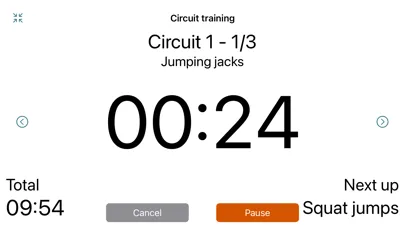 View countdown of each interval and total remaining time, with an option to display total elapsed time.