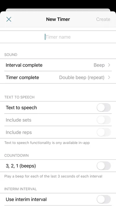 Enable countdown beeps, set interval/timer sounds, and/or enable text to speech.