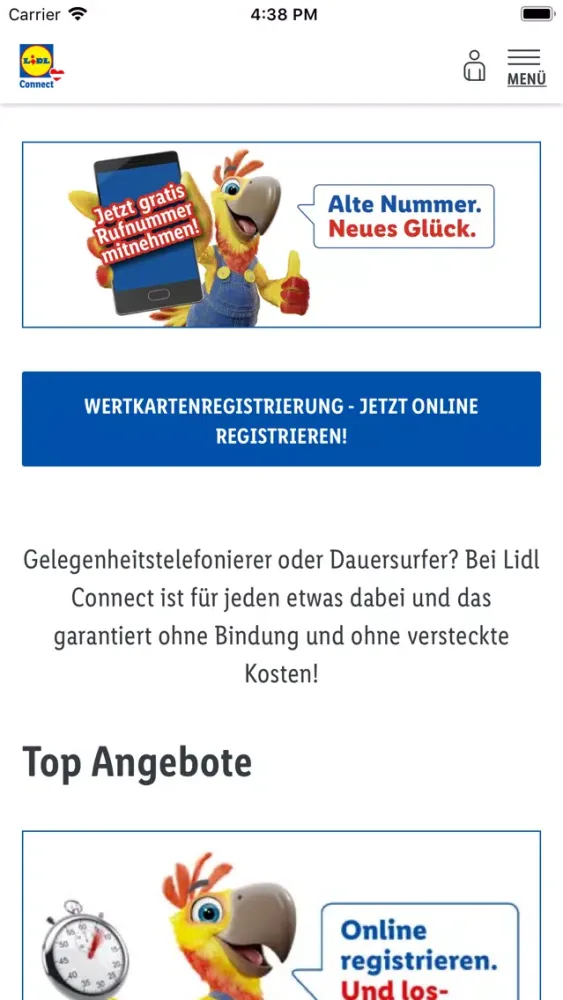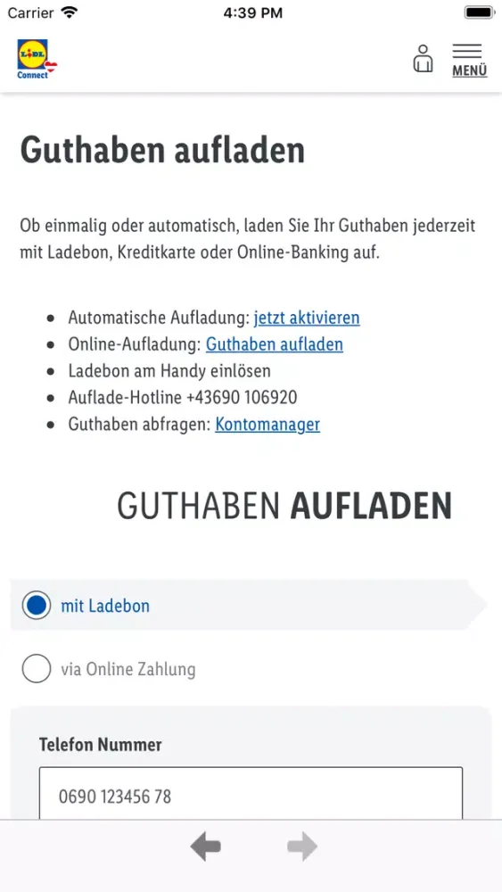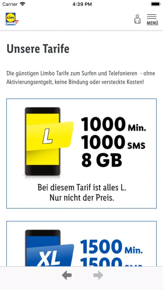 Mit der kostenlosen Lidl Connect App haben Sie jederzeit Zugriff auf die wichtigsten Informationen Ihres Tarifs (z.B. Guthaben, Freieinheiten, Verbrauch, Gültigkeit). Sie können einfach und bequem Ihr Guthaben aufladen, Ihren Tarif wechseln oder sich über die neuesten Angebote informieren. Die App ist für Smartphones sowie Tablets optimiert.