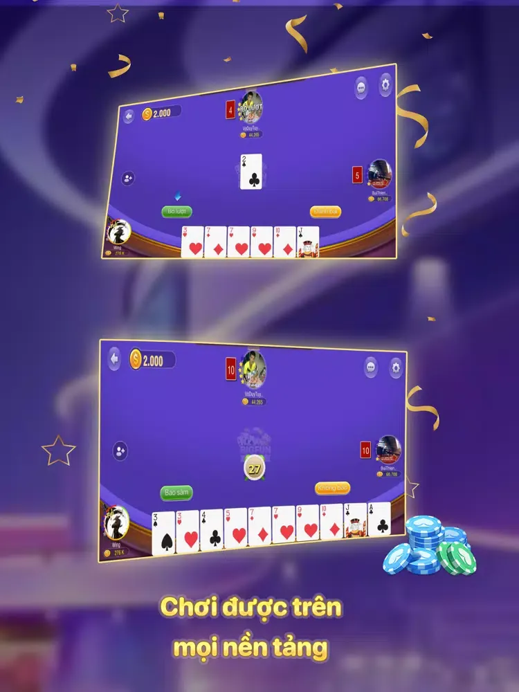 - Cung cấp cổng chơi bài online đa nền tảng. Bạn có thể đánh bài mọi lúc mọi nơi trên máy tính, điện thoại và máy tính bảng với cùng 1 tài khoản.