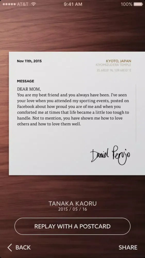 Put your video moments on a real postcard you can watch using the Airpost app.