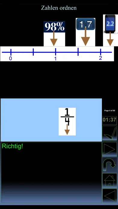 Zuerst entdeckst du die Lösungen handlungsorientiert indem du Aufgaben löst, in denen du mit dem Finger Kärtchen, Pfeile und Begriffe zuordnest. Mit mathapp LU8 spielerisch zu lernen macht Spass. Dein natürlicher Spieltrieb wird genutzt um deine Mathematikkenntnisse zu verbessern und braucht etwas Köpfchen. Das Niveau entspricht dem 7. Schuljahr. Es hat aber auch viele Aufgaben die schon in der Unterstufe gelöst werden können. Es hat auch anspruchsvolle Aufgaben, die du jedoch gut lösen kannst, weil alles genau erklärt wird und es Schritt für Schritt schwieriger wird. Im Probiermodus kannst du alles zuerst selbst entdecken. Du bekommst immer sofort Feedback. Innerhalb einer gewissen Zeit kannst du sogar Fehler wieder korrigieren oder die Seite wiederholen und lernst aus Fehlern. So entdeckst du Schritt für Schritt vom Einfachen zum Schweren wie alles funktioniert. Im Schlusstest kannst du dann nicht mehr korrigieren und nicht mehr die Seite wiederholen, dafür werden die Punkte doppelt gezählt. Am Schluss gibt es eine Auswertung in Punkten oder in Prozent. Du kannst dich mit deinen Kolleginnen und Kollegen vergleichen. Ein Zertifikat kann deiner Lehrperson geschickt werden. Wenn du einmal das Programm heruntergeladen hast, brauchst du keinen Internetzugang und keine Codewörter mehr. Du kannst das Wesentliche im Bus, in der Badi, oder wenn du warten musst spielerisch repetieren. Innerhalb Sekunden bist du bereit am Lernen und kannst immer wieder dort weiter lernen wo du beendet hast. So macht Mathematik Spass. Wenn du die Aufgaben in mathapp LU8 gut geübt hast, kannst du das Kapitel Bruchrechnen auch in der Schule. So kannst du deine Leistungen verbessern. Denke auch an deine Freunde die keine Devices haben und stelle dein Gerät auch ihnen zur Verfügung, damit alle bessere Leistungen erzielen können.