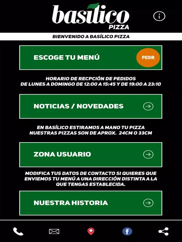 Basílico Pizza ofrece con esta App propia un nuevo servicio de atención a sus clientes.
