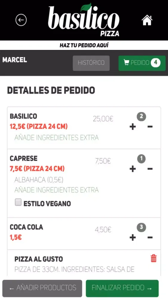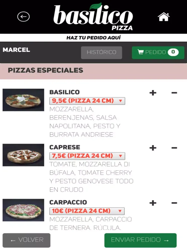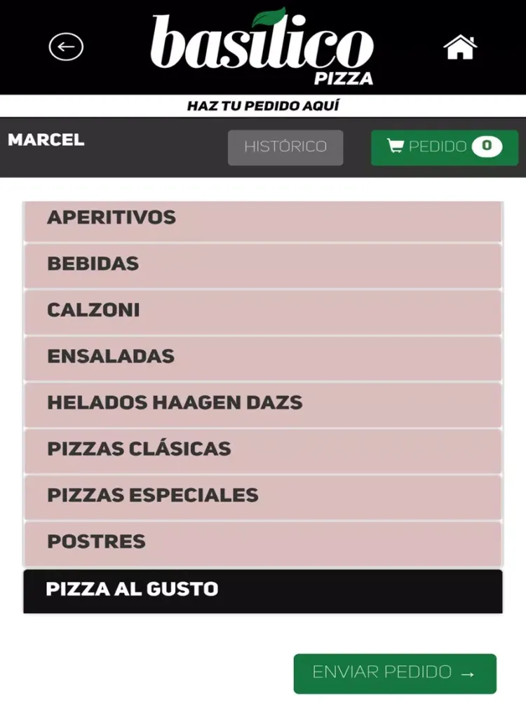 Pedir a través de la App de Basílico Pizza es muy sencillo: