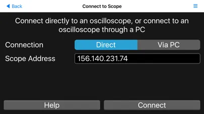 3. Enter the IP Address or hostname of your oscilloscope and tap Connect
