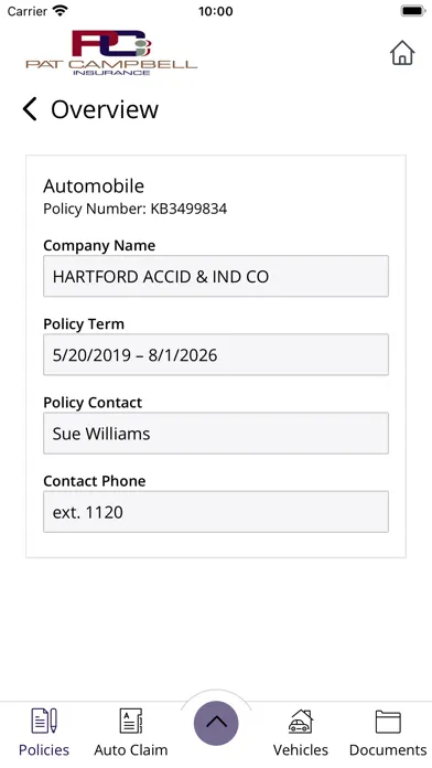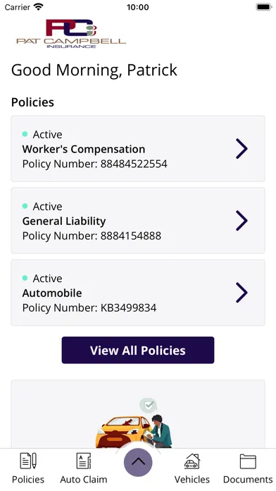 Pat Campbell Insurance Mobile provides customers with 24/7, personalized, mobile-friendly options to access their insurance information where and when they need it. You can view your policies and documents as well as generate and save auto ID cards. In addition, you can view contact information about your agent and customer service representative for quick reference.
