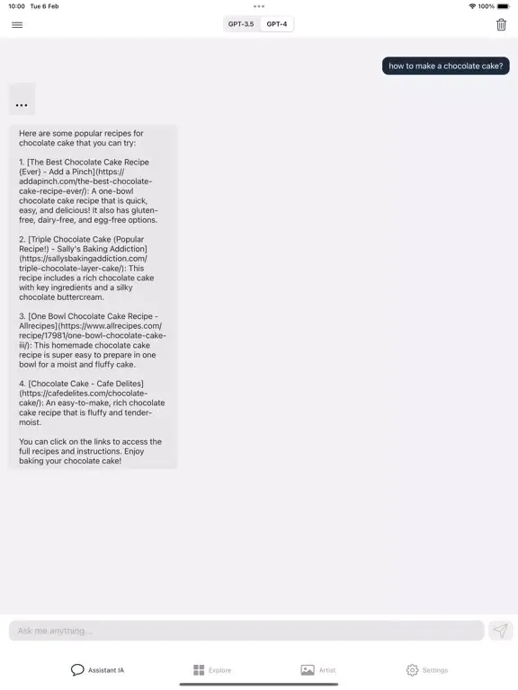 Tangkapan skrin Assistant AI: Open Chatbot AI iPad