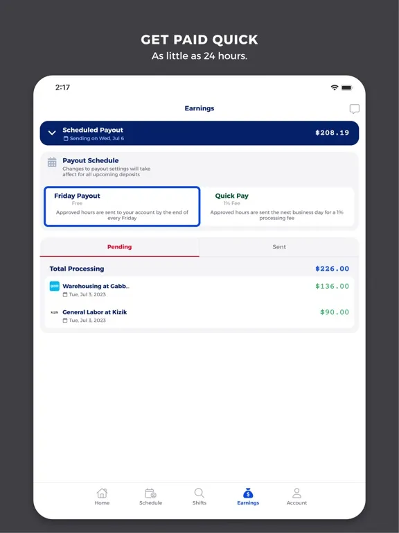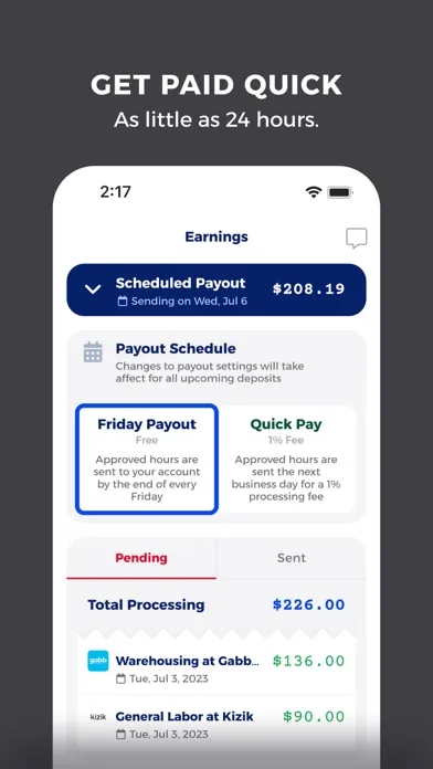 After you’ve worked a shift, the payment process is quick and easy: simply choose between Quick Pay or Weekly Pay on the app and get money deposited into your account as soon as 24 hours later. With Bacon, every day can be payday!