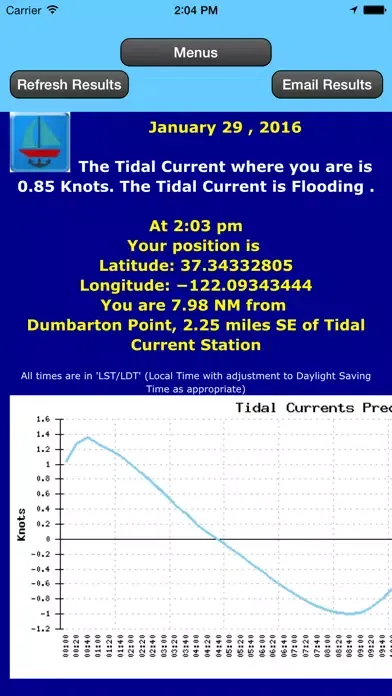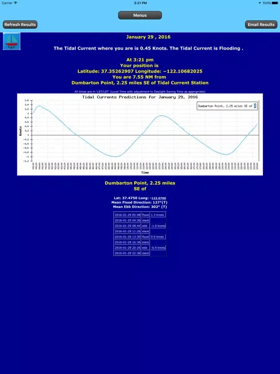 The tidal currents are plotted and displayed for you to verify the results. This helps you to fine-tune your next boating trip.