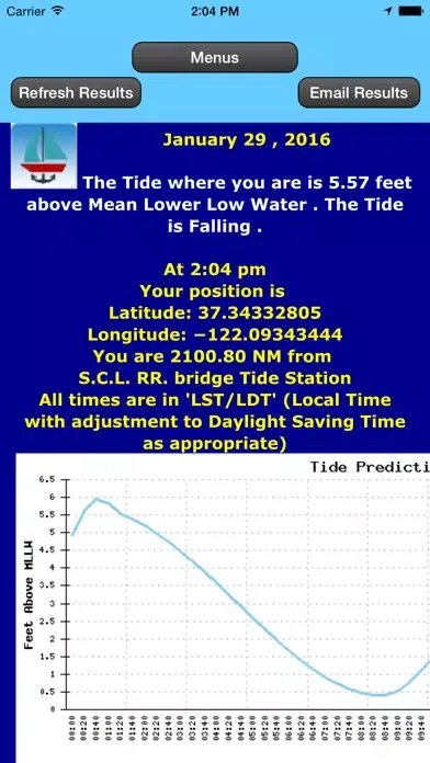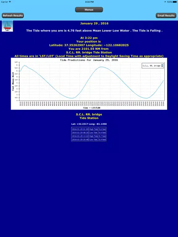 You can quickly refresh your boat’s tide based on the updated GPS reading by touching one button.