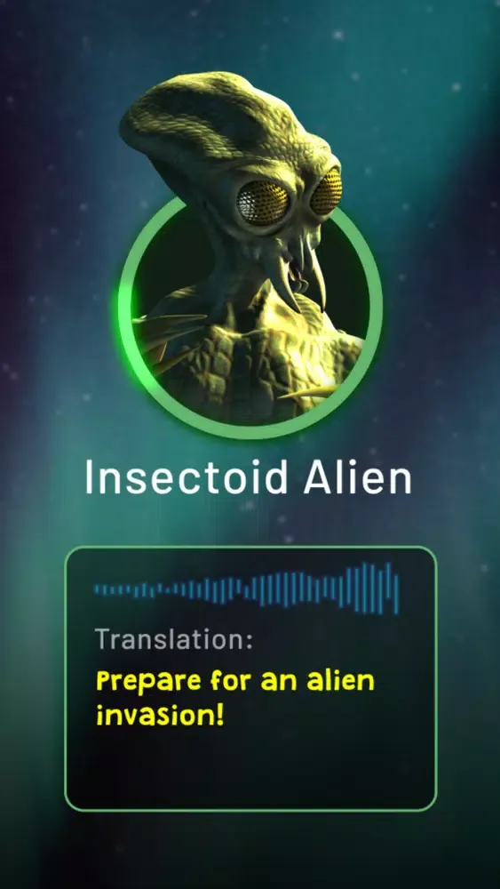 Receive multiple calls form three different alien species and use your inbuilt translator to understand what they are saying. Each alien will warn of an alien invasion... so be prepared for an invasion jump scare!