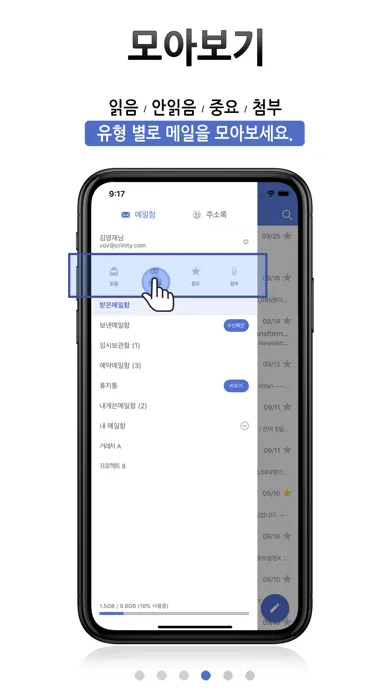 - 읽음 / 안읽음 / 중요 / 첨부 형태 별로 골라 보기가 가능합니다.