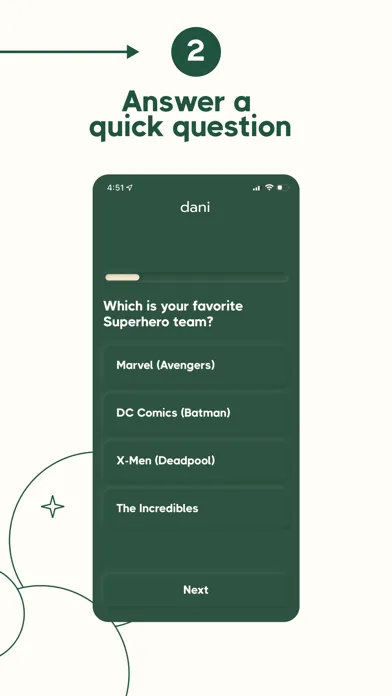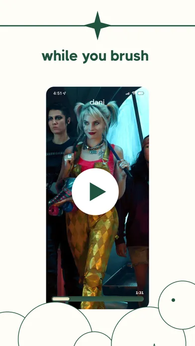 Set a brushing schedule for morning and night and we will send you a reminder to brush with Dani. Just open the app, watch a 2 minute video while brushing your teeth, and complete your session with a one question survey. Not only will this help you brush longer by taking your mind off of it, but with an entertaining story, we think you will actually enjoy brushing your teeth from now on. Simply answer a basic question after the video, no wrong answer, and you have earned one Dani credit!