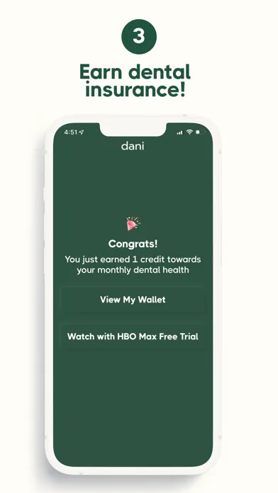 At the end of the month, Dani will send you money for your total credits earned in order to offset the cost of your dental insurance. Dani credits are meant to offset the cost of your dental insurance so in order to receive money, you have to first sign up for the insurance. Your card will be charged at the end of the month and Dani will send you money the next day.