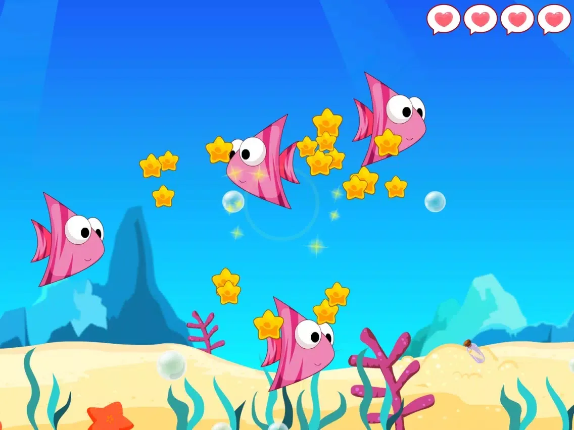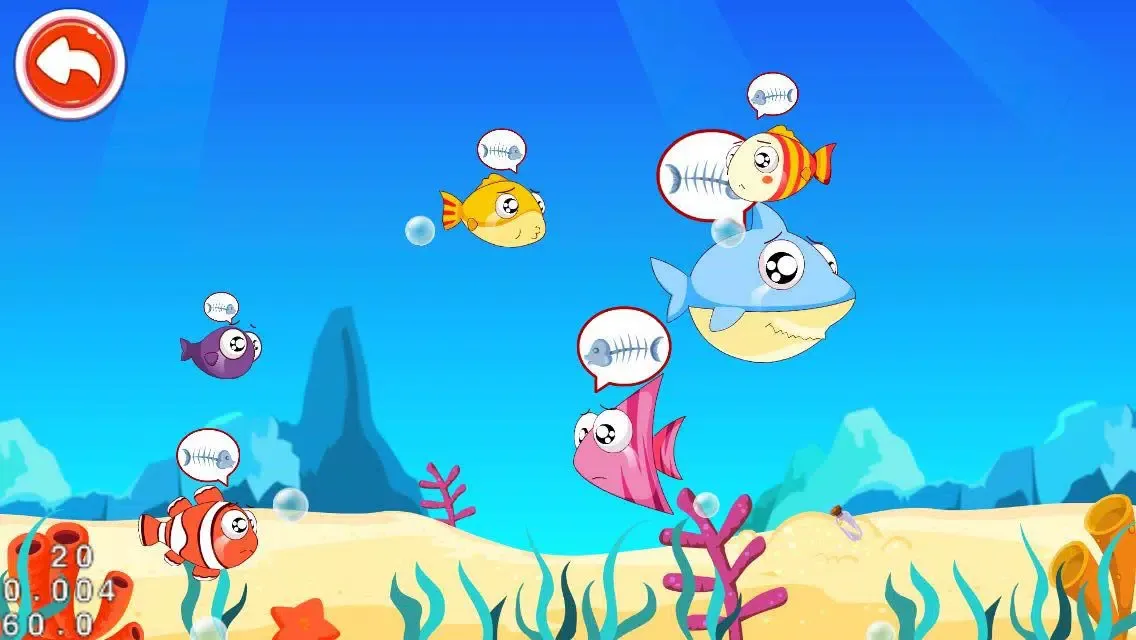 莱莱的小鱼们肚子饿啦!宝宝们要把有限的鱼食均匀的分给每条小鱼哦!