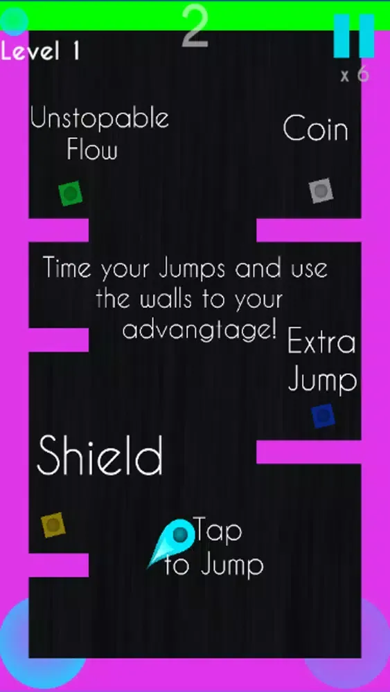 In Will O' Flow, you control one of several Will O's as you travel up the never ending tower of flow. Each time the Will O' touches the wall, the Will O' will change direction. Taping the screen will make the Will O' jump. There are three game modes. Practice is where you can play each individual level to try and master it. Adventure Flow is where you travel up the tower of flow and collect as many flokens as you can. Endless mode is the ultimate test of your skill. Be careful because in this game mode, every jump counts. You also have access to customize the level background, music, and screen filter.
