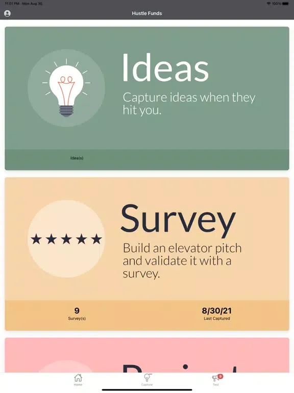 Hustle Funds allows you to validate your business ideas and share them with friends. Send out a pitch video, share your back of the napkin doodles or text to trusted friends and let them rate your idea. You get ratings to ensure your idea rocks before investing your precious time in your idea. We help you to Dream big, Start smart!