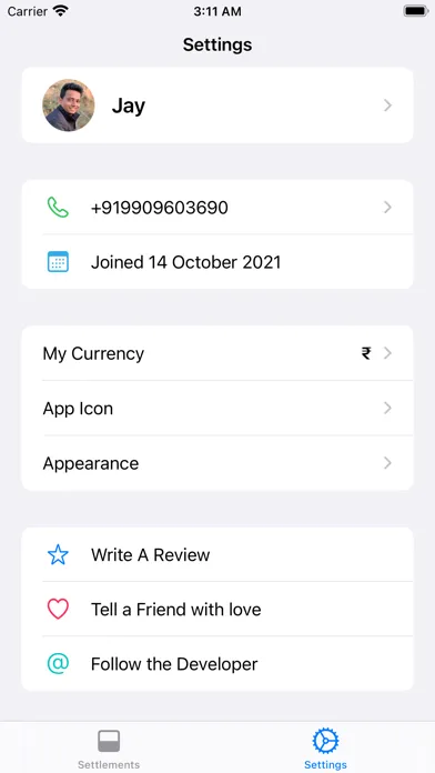 Settlement between friends and family members. Add Settlement, Bill to manage your expenses.