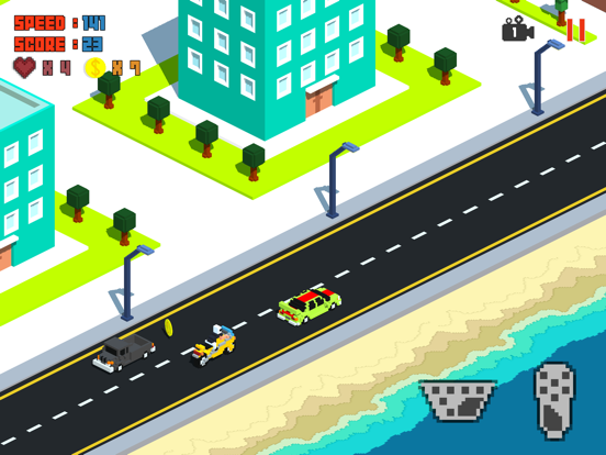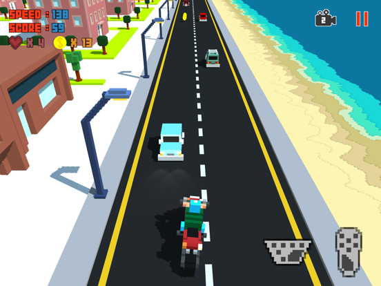 Jump into your blocky motorcycle and make your best score by avoiding the traffic! While driving through traffic, collect coins on the road as many as you can. "Fast and Blocky" is an endless driving game. On the Fast and Blocky app, you can upgrade your motorcycle through coins that you collect on your way. You need to be careful while driving the blocky motorcycle because this journey will be dangerous and endless.