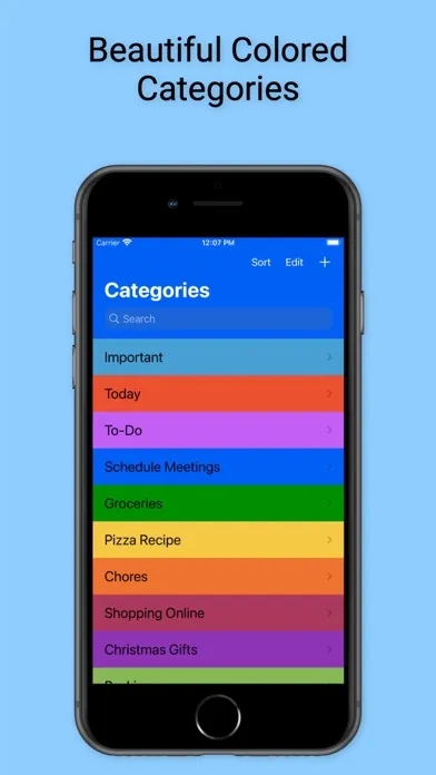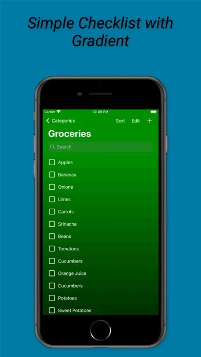 CheckDo is a simple colorful checklist. Create your own categories and pick a color for it. The items will be colored with a gradient effect using the category color.