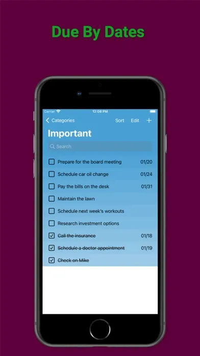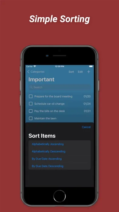 -Sort the categories alphabetically and the items alphabetically or by due date.