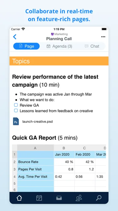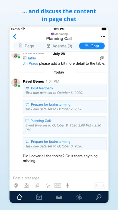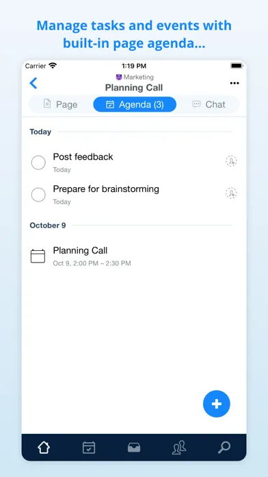 · Do minimalistic project management with built-in page agenda to keep tasks and events related to particular content.