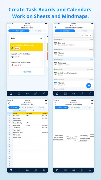 · Work with your team on various types of content. Pages, Task boards, Sheets, Calendars, and more.