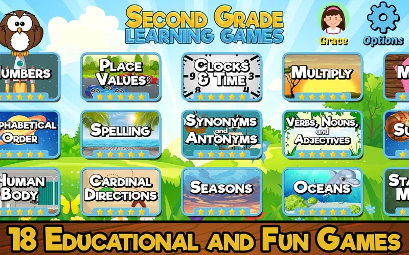 All 18 lessons and activities are designed using real second grade curriculums, so you can be sure these games will help give your child a boost in the classroom. And with helpful voice narration and exciting games, your 2nd grade student won't want to stop playing and learning! Improve your child's homework with these teacher approved lessons, including science, STEM, language, and math.