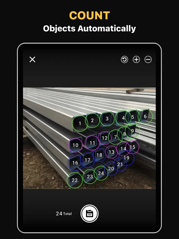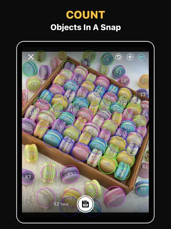 You can count things with this counting app via the camera in a shot. example tings:tablet、pills、pipes、coins、boxes、rods、lumber