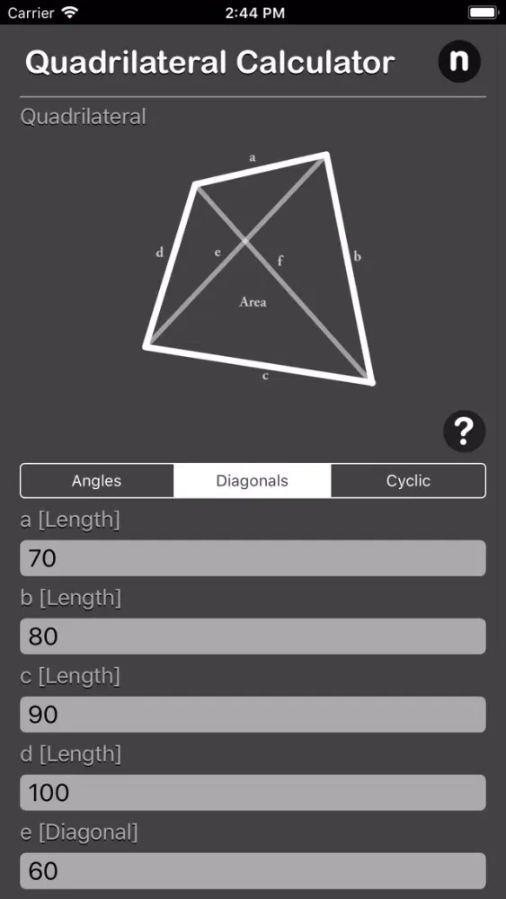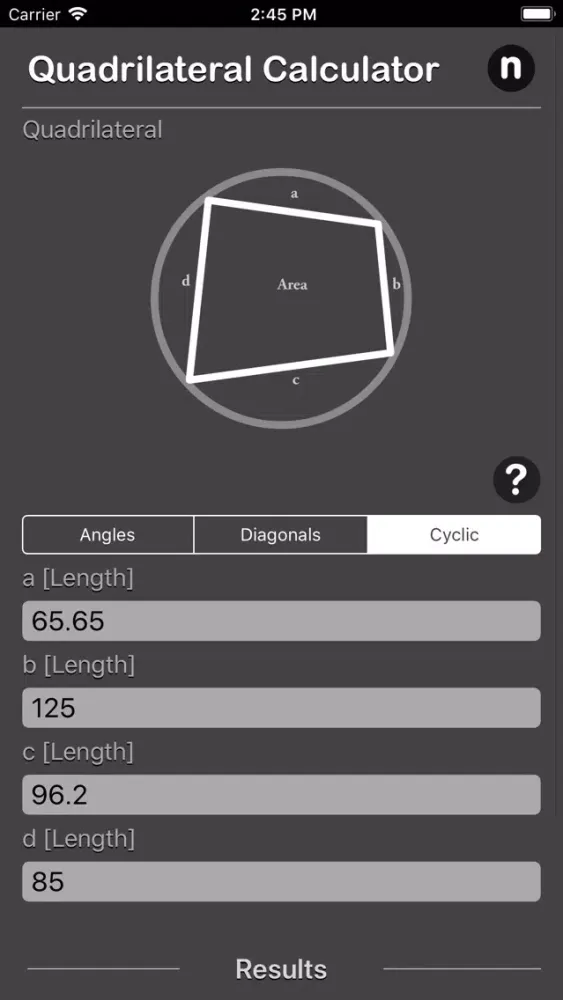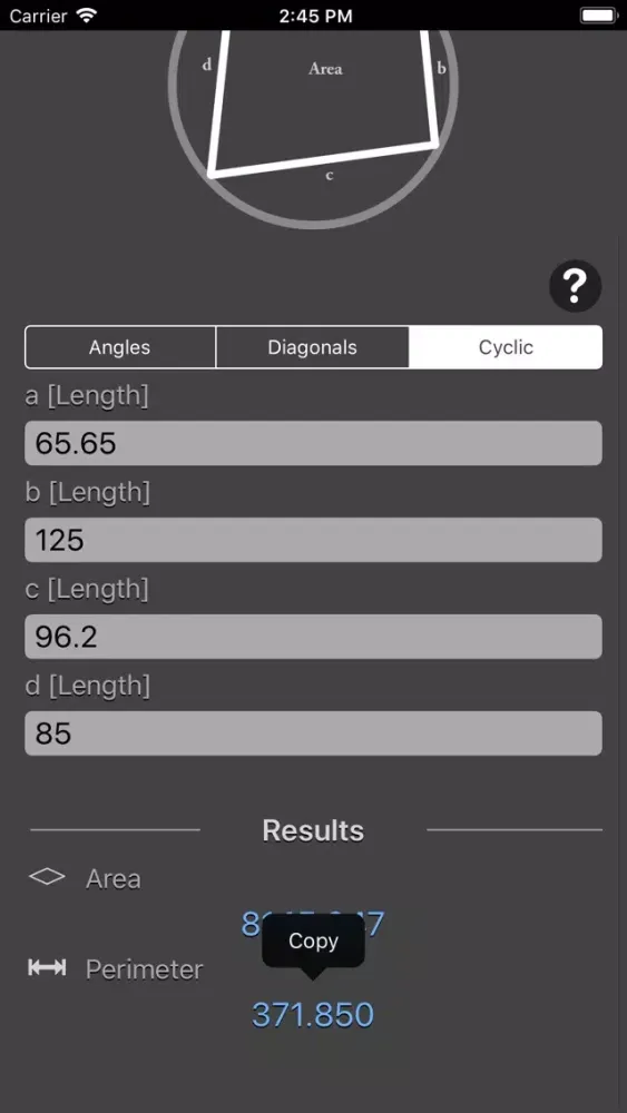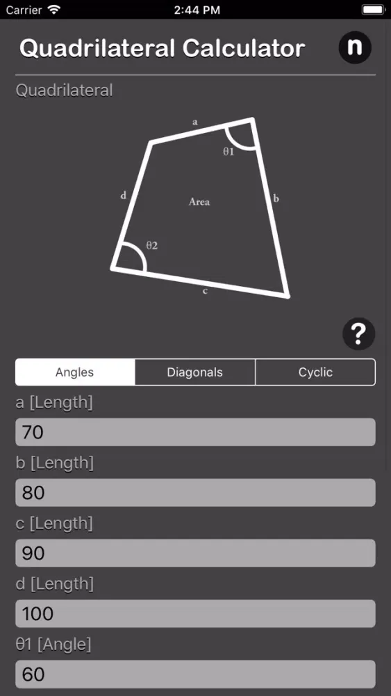 Tangkapan skrin Quadrilateral Calculator