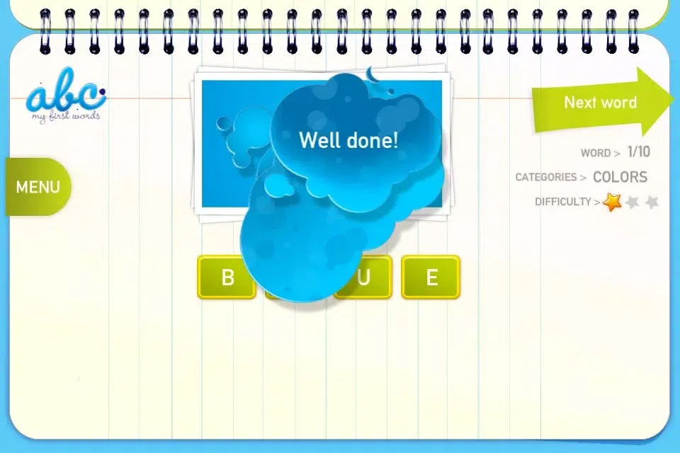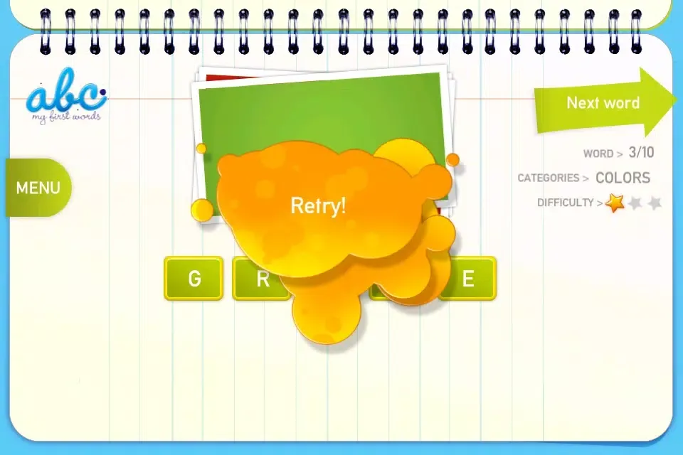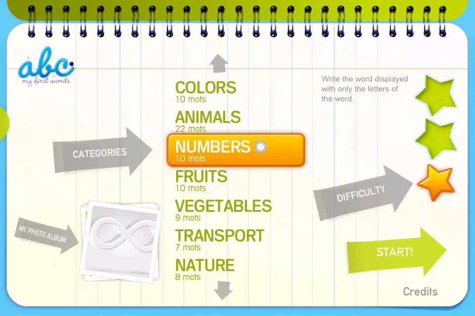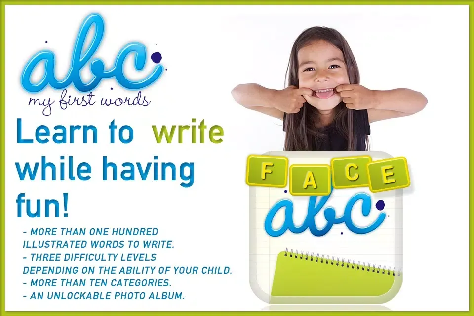 This game will allow your child to write more than 100 words in 9 categories, such as: colors, numbers, home, fruits, vegetables...