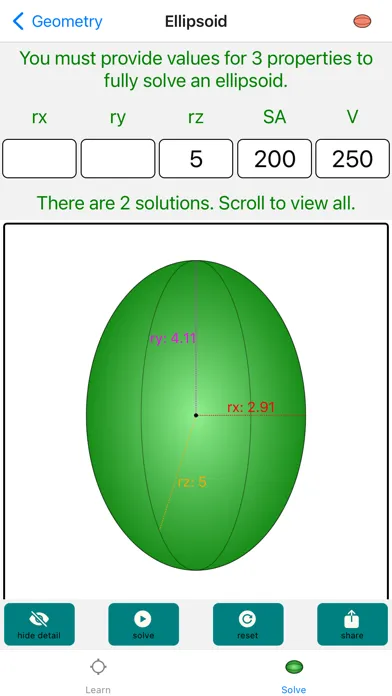 This app not only solves the geometric shapes, it also teaches you the formulas related to each geometric shape as well as it draws the geometric shapes when solved.