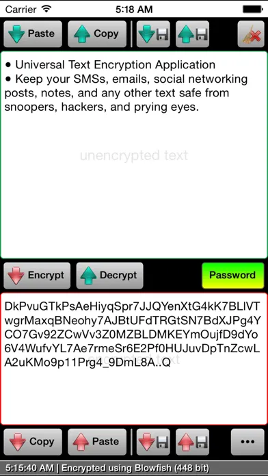 • This app does not function as a "Vault application". Instead, a password is set for the current encryption/decryption session, not to enter the app itself. You may have an unlimited number of passwords for any purpose—different files, tasks, people, etc.