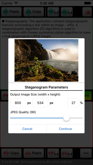 • It also includes steganographic features, allowing you to conceal text within a JPG image. This is achieved by using a steganographic algorithm (F5 algorithm) in conjunction with the chosen symmetric cipher algorithm to produce a final steganogram (JPEG image).