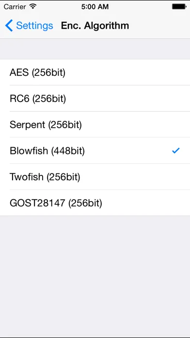 • The app guarantees real security by encrypting data using robust encryption algorithms: Blowfish 448 bits, AES 256 bits, RC6 256 bits, Serpent 256 bits, and Twofish 256 bits ciphers.