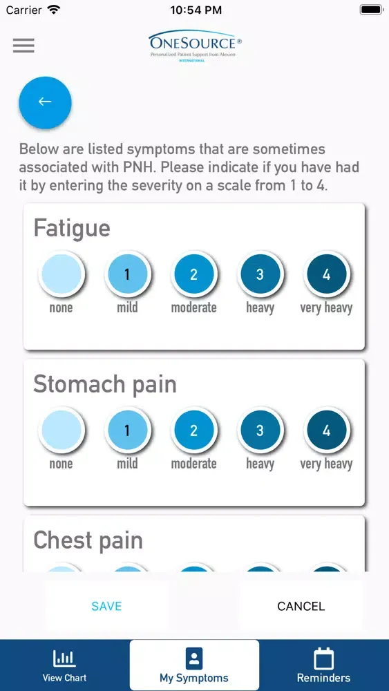 OneSource Symptom-APP helps you manage PNH through the use of a symptoms feature and a helpful reminders facility.