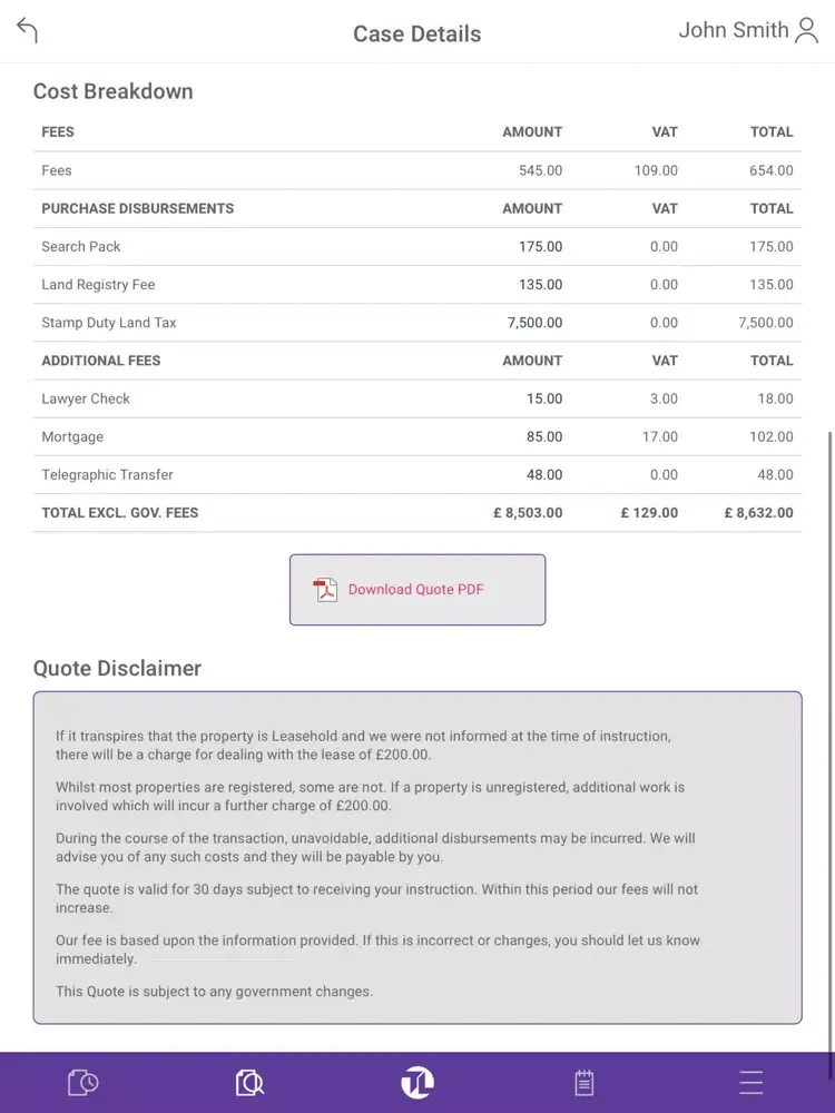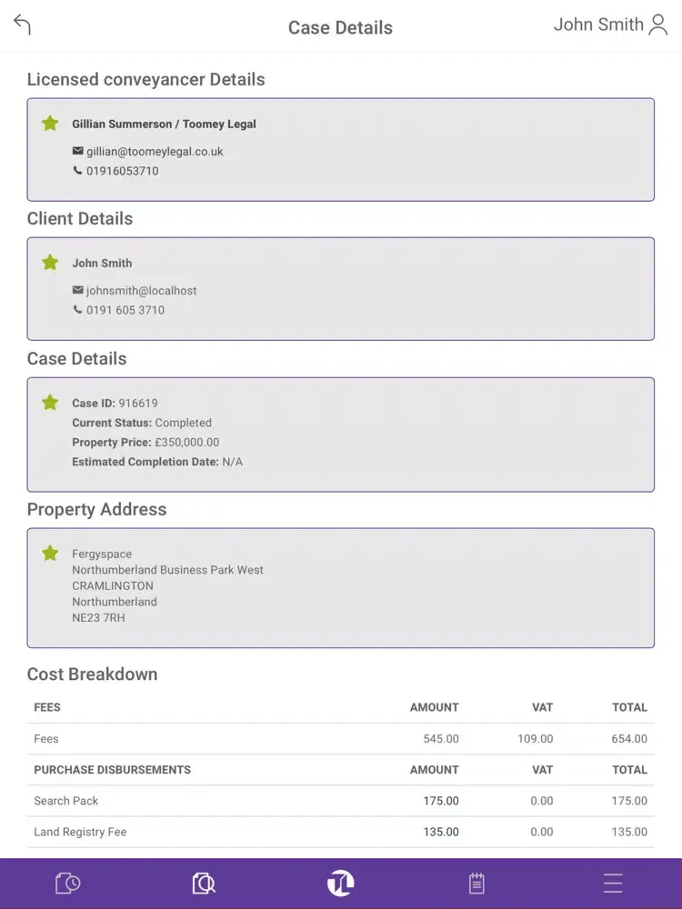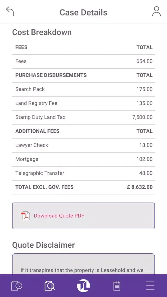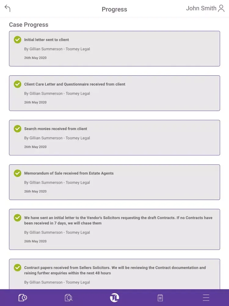 With any legal service, you’ll want visibility over the case without having to pick up the phone! In a world of mobile devices, we now expect the ability to review progress at a time that is convenient to us. This app has been designed with features that keep you updated by providing live case information. Whether you simply want to check the quote or if you wish to keep track of progress, this is the app for you. You’ll be able to clearly see each step in the legal case so you understand the process. Information is updated whenever a task is completed by us, saving you unnecessary time spent on phone calls and emails. The app will even send you notifications when a task has been updated, to make sure you’ve always got up to the minute information.