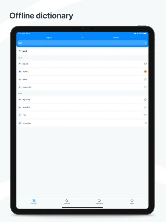 Simple, fast, convenient French - English and English - French dictionary. The Dictionary is OFFLINE and does not require an Internet connection. The dictionary contains the vocabulary trainer. This is an easy way to learn new words.