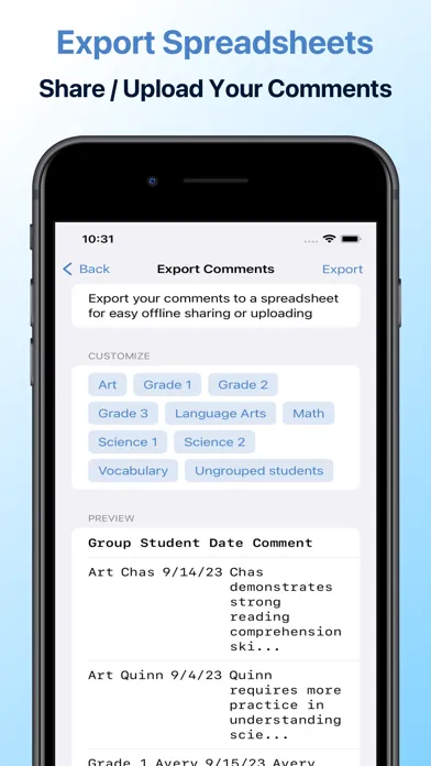 - Export a spreadsheet of your comments for easy offline sharing or uploading.