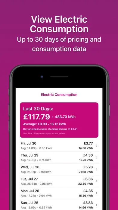 • View Electric Consumption - With daily pricing including half hour slots up to 30 days