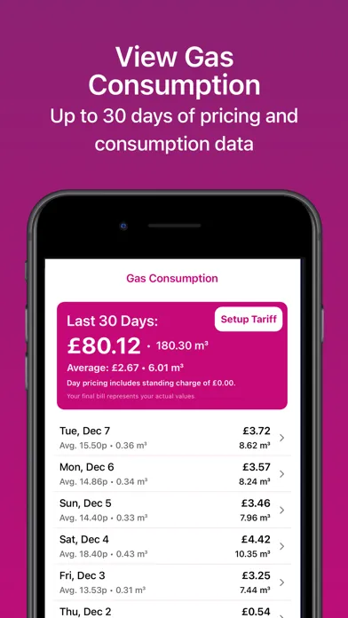 • View Gas Consumption - With daily and pricing consumption up to 30 days