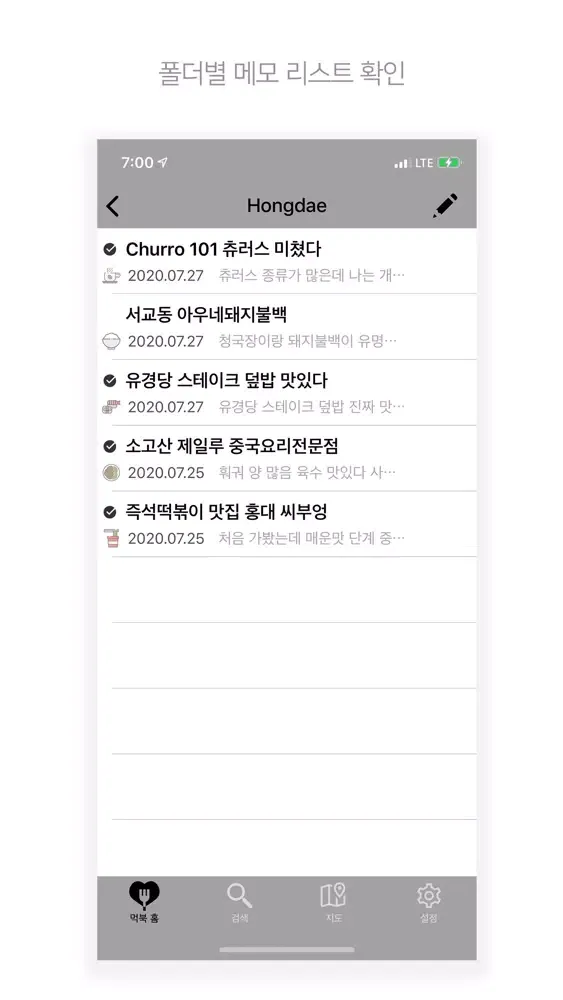 내가 가봤거나 가보고 싶은 다양한 맛집들을 메모장에 쉽게 기록하세요.