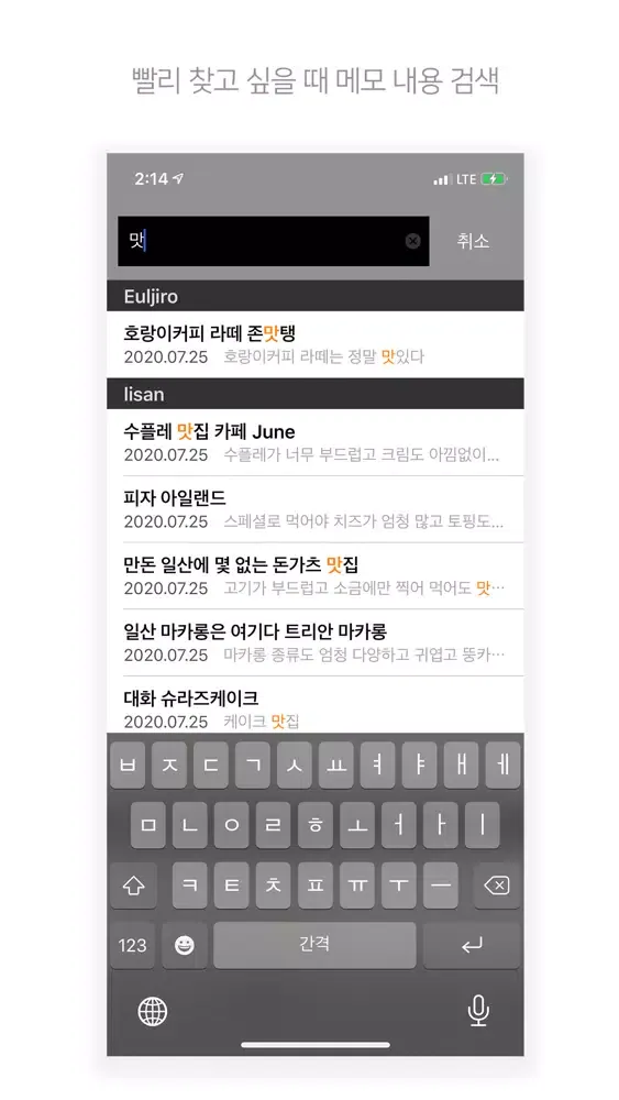 - 검색을 통해 작성한 메모를 쉽게 찾을 수 있어요.