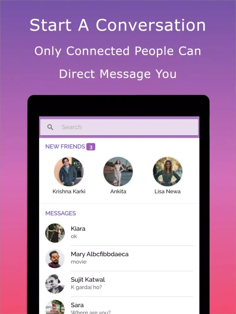 - Now you can start chatting and get to know them. Only connected people can direct message you.