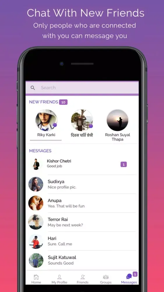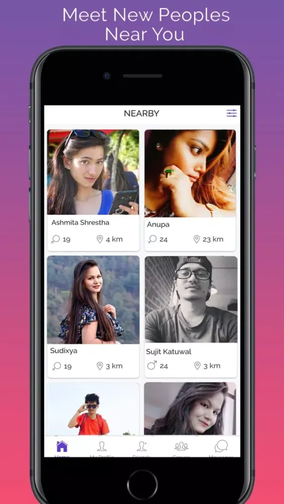 Find people who are just near you, send friend requests and chat! Simply login to our user-friendly app with one tap.