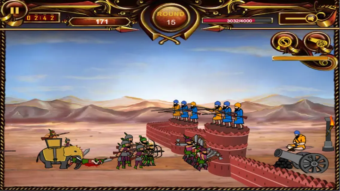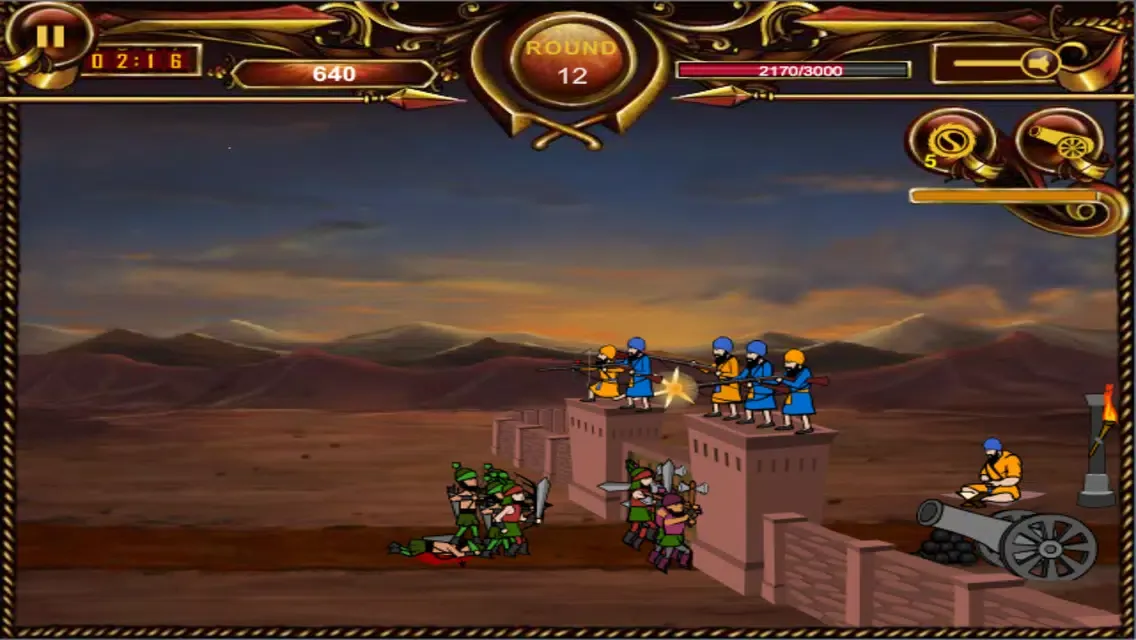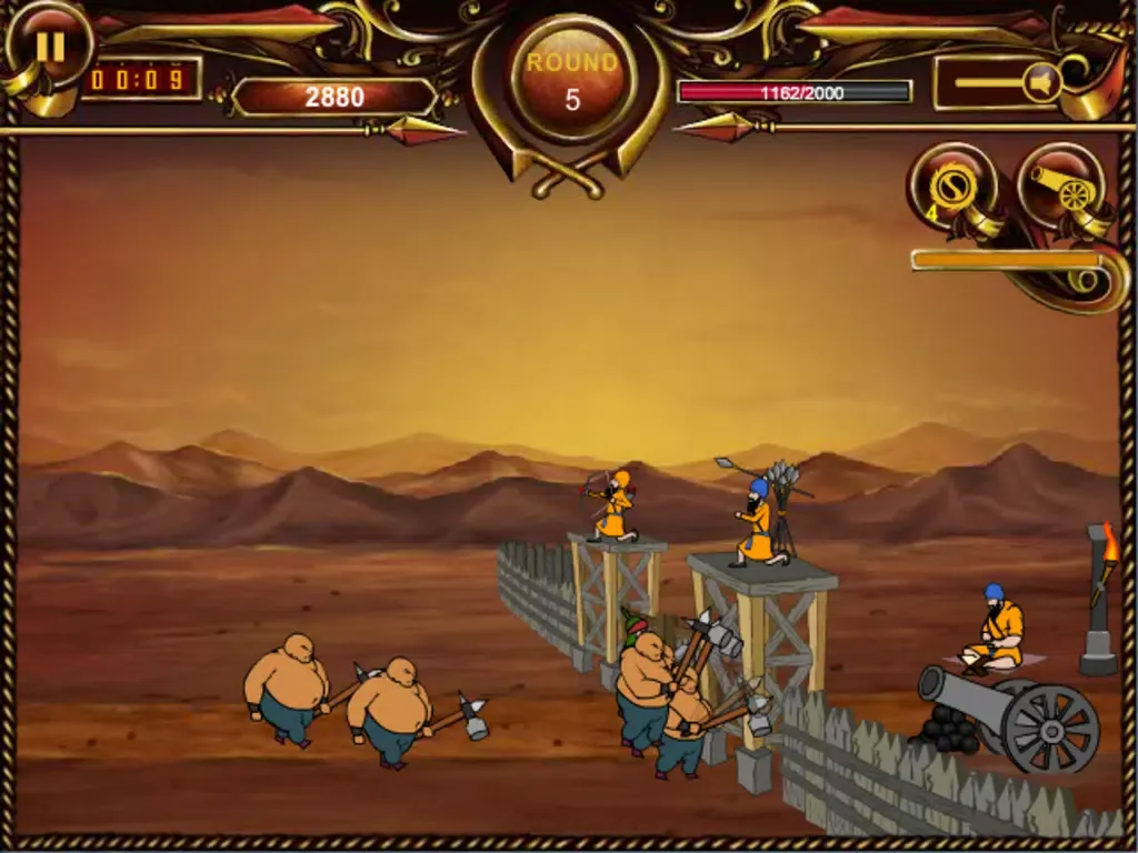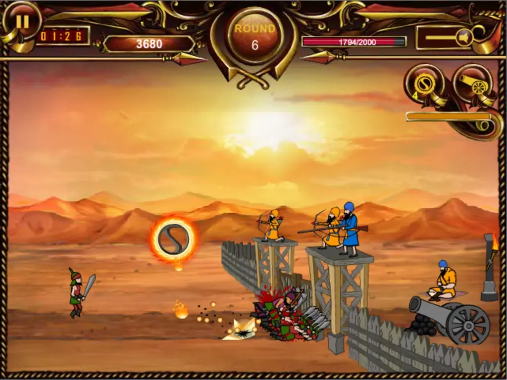 Every enemy attack repulsed earns you points which help in strengthening the Morcha or upgrading your weapons like Chakkar attack, upgrade wall or tower. A tower upgrade gets you an archer or a sharp-shooter for increased defense. It's a thrill fighting the mercenaries of an army of Subedars, Archers, Gunmen and Elephants. The challenge is not to loose the game by defeating the attackers before they destroy the wall. Don't let the enemy soldiers come in vicinity of the wall or else it can fall in no time.