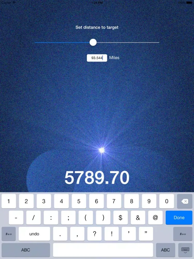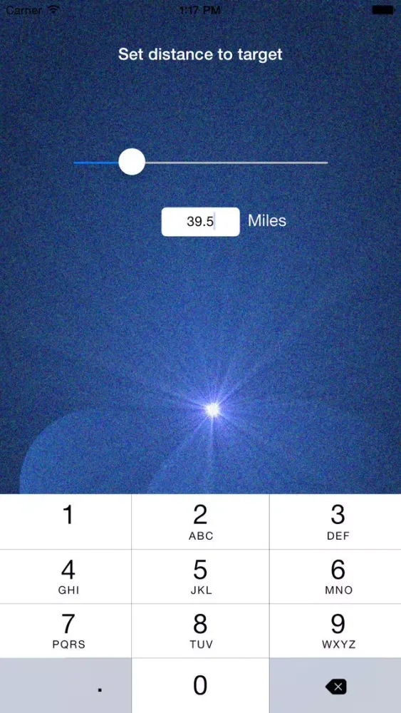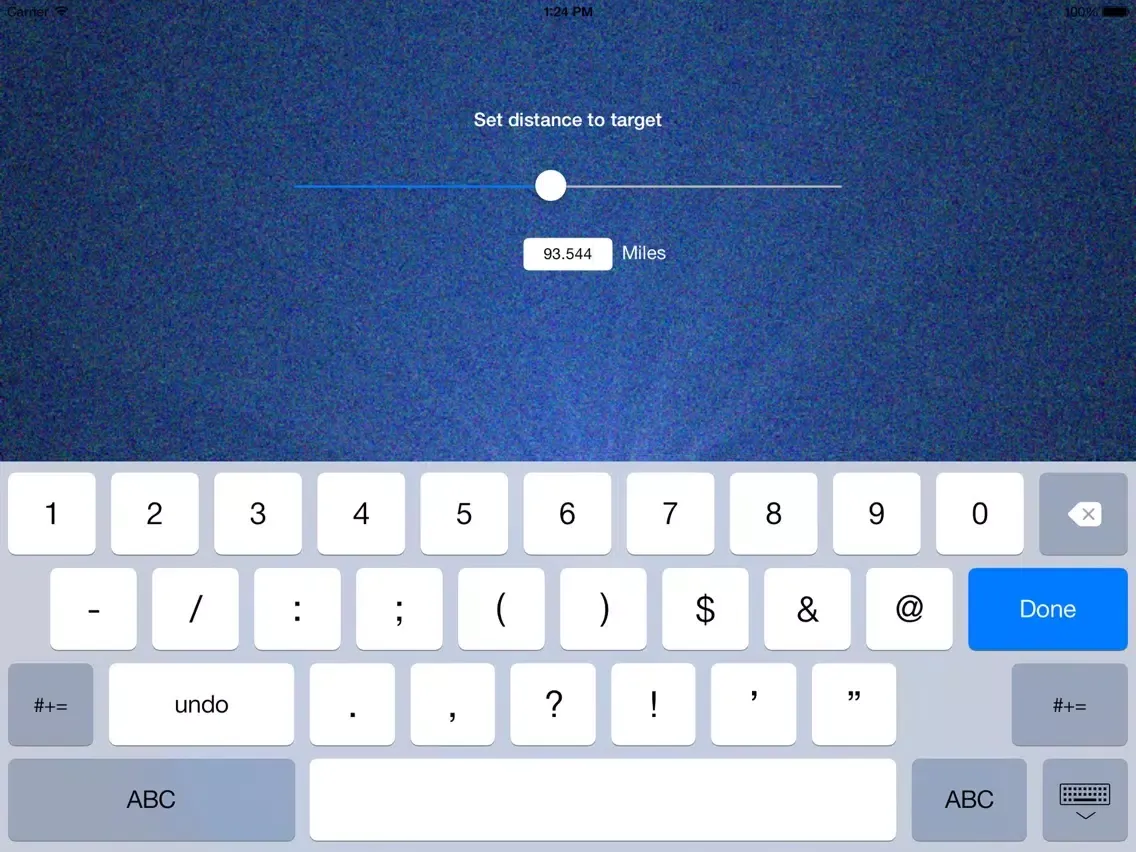 The current version allows you to quickly slide from 0 to 200 miles with 1 finger, or enter a more specific value such as 1253.345 via keypad.