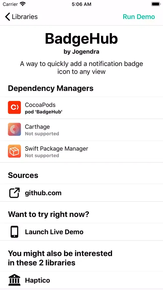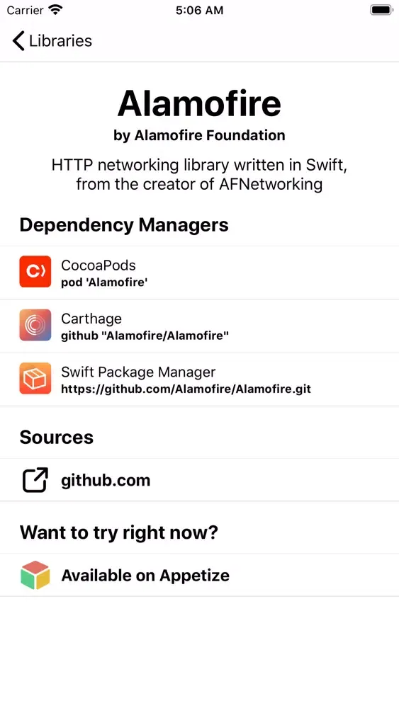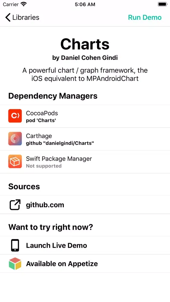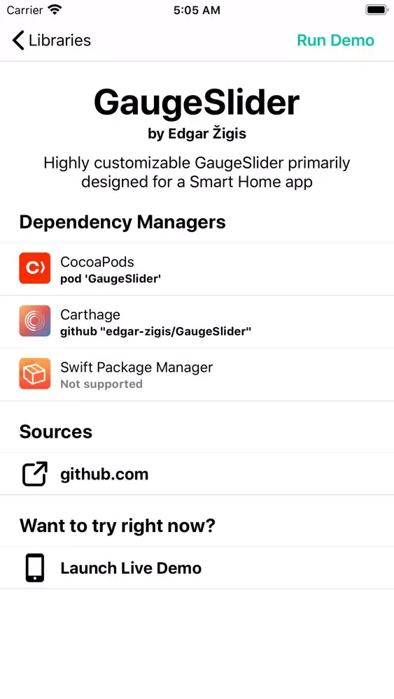 Awesome Libs app is the solution! The app is an offline collection of open source libraries written in Swift. It works extremely easy: launch it, tap the name of interesting library and... test the library without exiting the app! Each library in Awesome Libs has demo screen designed for comfortable test-drive. No Internet connection required.