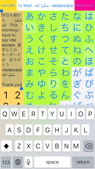 Equipped with a writing machine for the global era. Two different types of keyboards are used in one view. One of them is the original keyboard for the Japanese alphabet "Hiragana" language. You can immediately copy and paste the created text into the email attached to this app and send it to your computer, so you can use the functions such as copy and paste on your computer as they are.