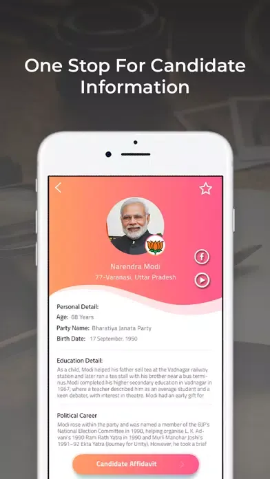 In sort all information regarding upcoming India Elections 2019 at one place. Our objective to spread awareness regarding candidates, parties and encourage voters to vote for better future of India. Encourage Voters for take part in India's biggest festival of democracy. Idea behind this app is to spread awareness and provide voters with specific information to make informed decisions.